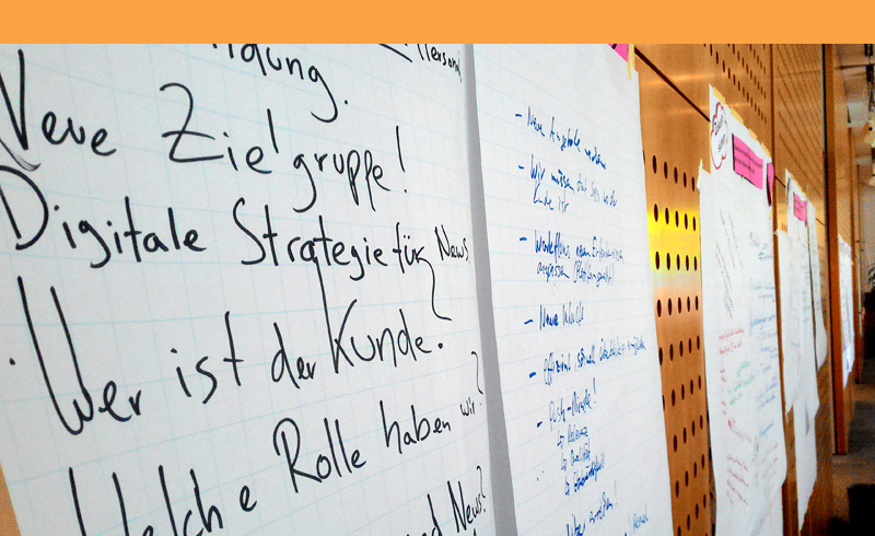 - Im Rahmen eines kompakten Gegenstrom-Modells werden nach den Redaktionsleitern in einer zweiten Stufe die festen Mitarbeiter in 6 fachspezifischen Workshops eingebunden. Ihre Anregungen finden Eingang in das Strategiekonzept und in Umsetzungsprojekte.
